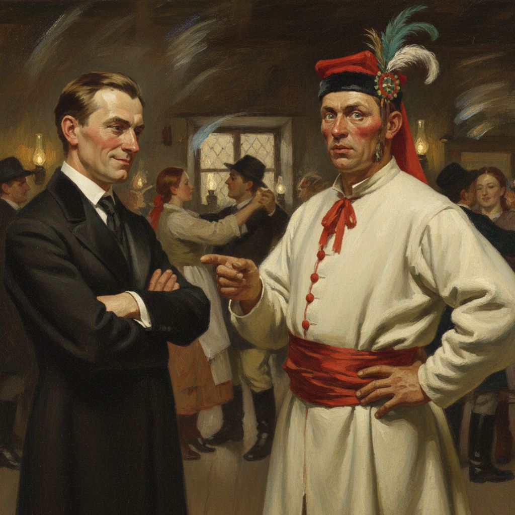 Wspólna zabawa przedstawicieli wsi i miasta w zamierzeniu miała stać się symbolem narodowej jedności. Jednak różnice obyczajowe oraz odmienne sposoby myślenia okazały się murem nie do przebicia. Inteligenci wykazują się: